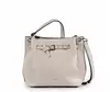 Bandolera mediana con detalle de hebilla y arandelas al frente. Herrajes niquelados y logo metalizado.